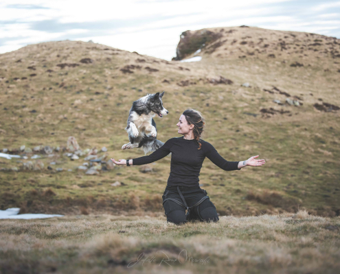 Bandja est une jeune chienne comme on en rencontre peu. De cette jeunesse, elle a la fougue, l’envie, la détermination, la naïveté aussi, peut-être. C’est une chienne extrêmement dynamique dans le travail, demandeuse, passionnée et passionnante, qui sait aussi faire preuve d’une immense tendresse lorsqu’elle réclame des câlins. D’ailleurs, sa spécialité est de s’accrocher à notre jambe pendant une promenade, pour réclamer une pause, et se blottir contre nous.