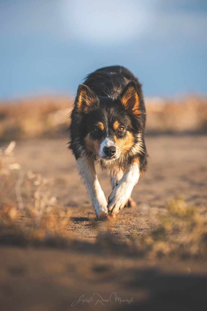 On l’appelle Orchidée, petite fleur frêle et délicate, pour qu’elle finisse par y croire. Mais non, Orca, c’est un boulet de canon de 7 ans, qui a débarqué dans notre équipe par hasard il y a 2 ans. C’est la soeur de Ookad, qui a grandi dans une ferme, et n’a pas reçu suffisamment d’activité pendant les 5 premières années de sa vie. En arrivant chez nous, elle avait de vrais problèmes pour se concentrer, comprendre le principe même de l’échange entre un humain et elle, aucune conscience de son corps, de l’espace, de la récompense, du leurre, aucun intérêt pour les objets, les jouets. Une chienne brute (dans tous les sens du terme) de 5 ans. Il lui a fallu apprendre à apprendre, réfléchir, proposer, répéter, essayer, se tromper, ne pas se démotiver. Pleine de bonne volonté, elle avait un réel besoin de contact avec quelqu’un, et avait du mal à se contrôler lorsqu’on lui donnait un tout petit peu d’attention. En 2 ans, elle s’est transformée. Tant physiquement que mentalement. Elle est devenue une petite chienne athlétique, motivée, dynamique, appliquée et réfléchie, et a atteint des objectif que nous n’imaginions pas atteignables pour elle, qui partait de si loin, si tard dans sa vie.